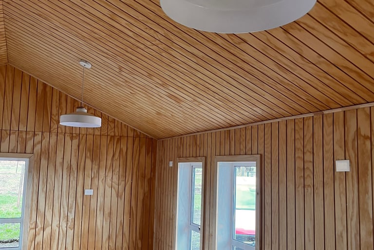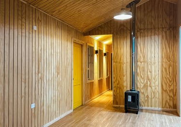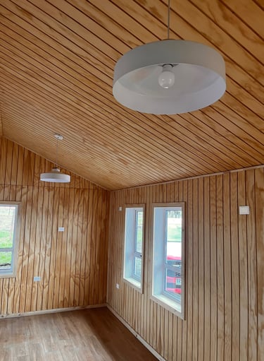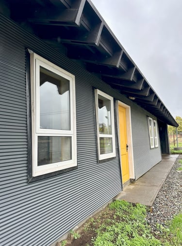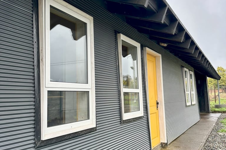 Materialidad: Estructura predominante en madera y revestido con microzinc ondulado.