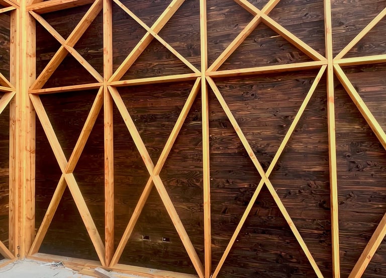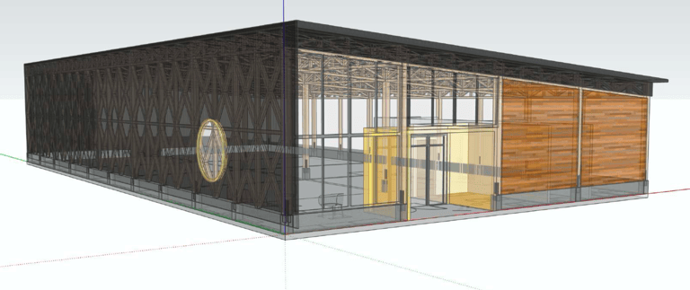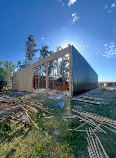 Descripción: Actualmente en construcción, el diseño corresponde a un espacio para arrendar, destinado a una empresa local de gimnasios de crossfit que busca expandirse en la región. En vista de esto, se ha diseñado una estructura en madera de pino rádiala, la que funcionará como una gran retícula o malla, destacando la estructura como elemento principal. Esta innovadora malla de madera está concebida para ser una envoltura que facilite la comprensión del volumen del edificio en su totalidad, proporcionando tanto funcionalidad como estética. Además, se han considerado espacios adicionales que pueden ser utilizados para actividades complementarias y el mejoramiento de la experiencia de los usuarios. La materialidad elegida no solo resalta la sostenibilidad, sino que también aporta un carácter único al entorno, integrándose de manera armoniosa con la naturaleza circundante.