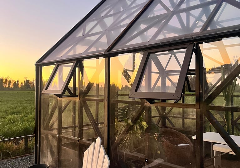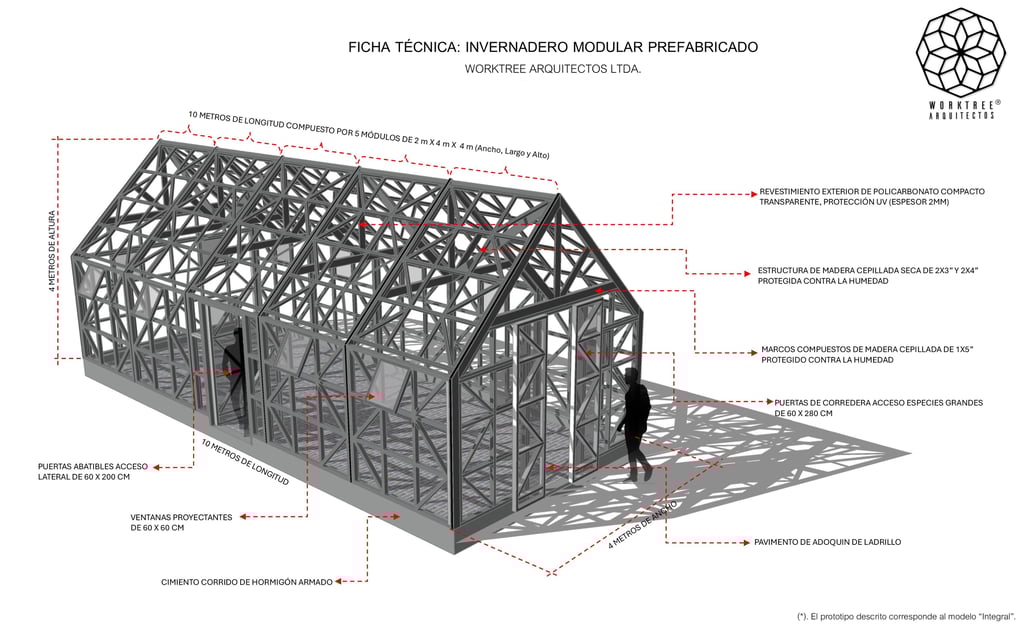 Descripción: El proyecto consiste en una unidad modular prefabricada, desarrollada en estructura liviana industrializada con paneles independientes para facilitar su traslado, montaje y adaptación a distintos entornos. Su diseño optimiza el uso del espacio para el cultivo a pequeña escala, favoreciendo el crecimiento de diversas especies vegetales y promoviendo la diversificación de cultivos como estrategia clave de la agricultura sostenible. Esta solución accesible y eficiente permite a los usuarios maximizar su producción con bajo impacto ambiental, integrándose de manera flexible en proyectos de innovación y desarrollo rural. A la vez se transforma en un espacio habitable para estar y conectarse con la naturaleza.