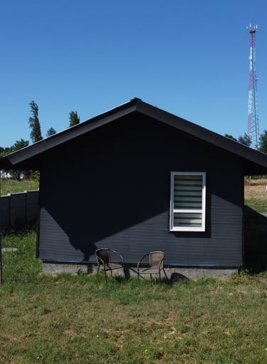 Materialidad: Estructura predominante en madera y revestido con microzinc ondulado.