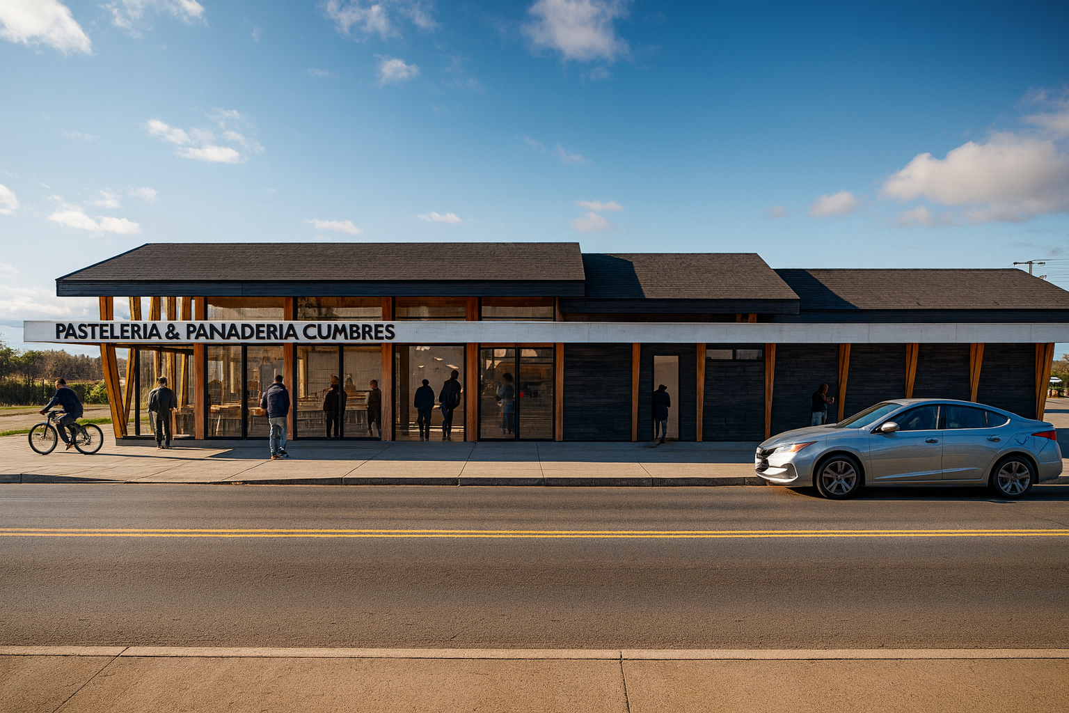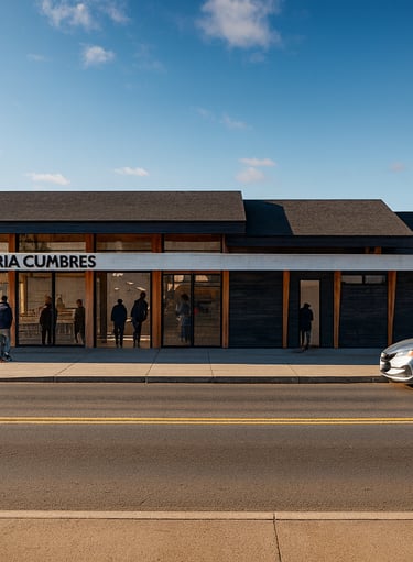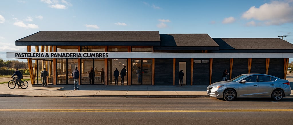 Descripción: El diseño arquitectónico de este local comercial, originalmente concebido como panadería y pastelería, evoluciona hacia un café gourmet, enfocado en calidad y espacios exteriores que promueven la integración comunitaria. La propuesta se adapta a una franja estrecha debido a una expropiación, utilizando tres volúmenes definidos: venta al público, área administrativa y producción/pastelería. La volumetría escalonada refleja estas funciones y se conecta con el entorno, creando espacios que fomentan la interacción social y convirtiendo el café en un punto de encuentro comunitario. El proyecto logra un balance entre eficiencia espacial y calidad arquitectónica, transformando limitaciones en oportunidades de diseño.